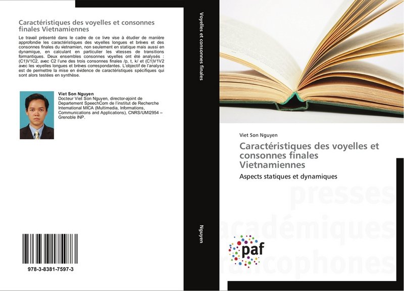 Le travail présenté dans le cadre de ce livre vise à étudier de manière approfondie les caractéristiques des voyelles longues et brèves et des consonnes finales du vietnamien, non seulement en statique mais aussi en dynamique, en calculant en particulier les vitesses de transitions formantiques. Deux ensembles consonnes voyelles ont été analysés : (C1)V1C2, avec C2 l’une des trois consonnes finales /p, t, k/ et (C1)V1V2 avec les voyelles longues et brèves correspondantes. L’objectif de l’analyse est de permettre la mise en évidence de caractéristiques spécifiques qui sont alors testées en synthèse. Maison d'édition: Presses Académiques Francophones Auteur : Nguyen Viet Son Nombre de pages 148 |